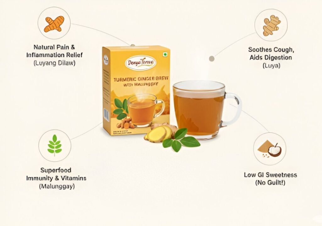 Every sip delivers the potent benefits of Turmeric, Ginger, Malunggay, and low GI Coco Sugar.